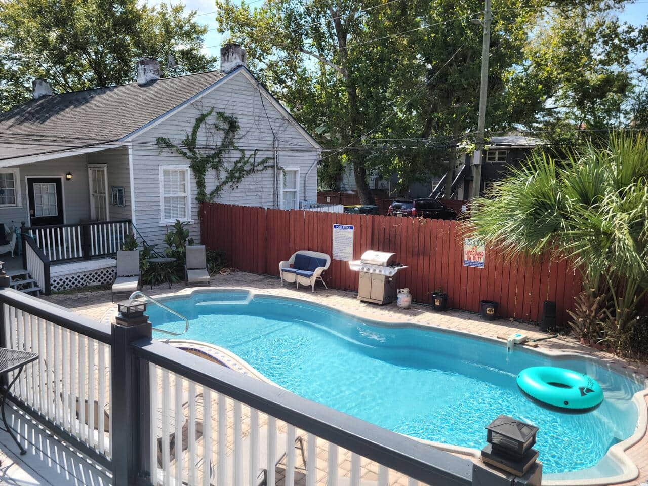 Did we mention there is a pool? The pool is shared by 8 condos, so it is not 100% private. But , rarely is there more than 1 group of guests down there at a time. And EVERYBODY loves to come home from a beautiful day out in Savannah to relax in or by the pool!